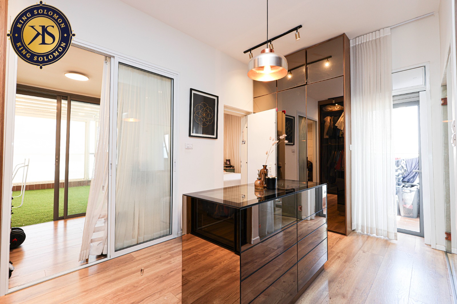 40 sqm de balcon solarium supplémentaire avec fermeture électrique destiné à tout usage : réception, salle de sport, salle de cinéma, baby-foot, etc. L'appartement dispose d'un grand salon spacieux baigné de soleil avec de larges baies vitrées. Une cuisine de chef luxueuse avec un grand plan d'îlot et de nombreuses solutions de rangement. Une suite parentale luxueuse et indulgente avec une conception intelligente pour une intimité totale. Un dressing luxueux, large, impressionnant et bien équipé pour le confort des utilisateurs.